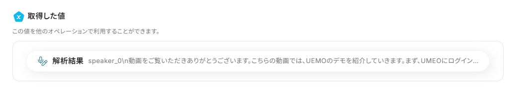 アウトプットとは、トリガーやオペレーション設定時に、「テスト」を実行して取得した値のことを指します。