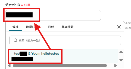 チャットIDは設定画面の注釈を参考にしながら、候補から入力しましょう。