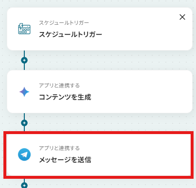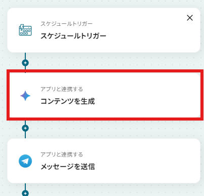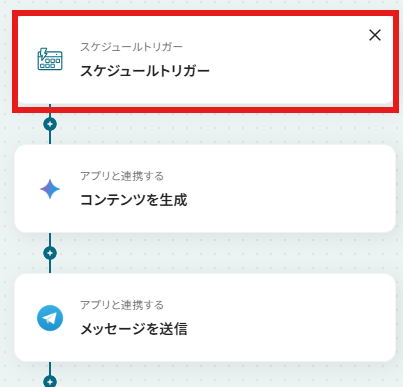 - スケジュールトリガーの設定とGemini、Telegramのアクション設定