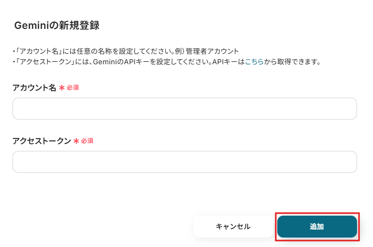 アクセストークンとアカウント名を入力後、「追加する」をクリックしてください。