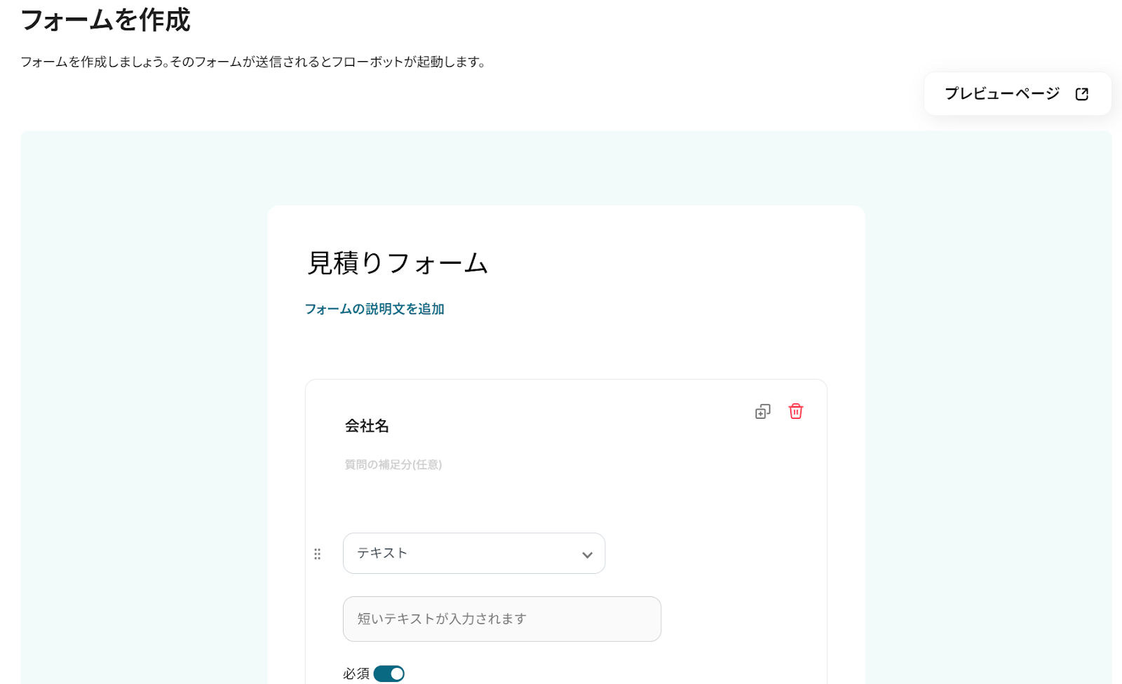 2.見積りフォームは元から設定されています。