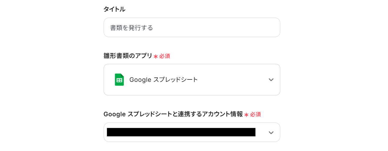 8.Google スプレッドシートと連携するアカウント情報を設定します。