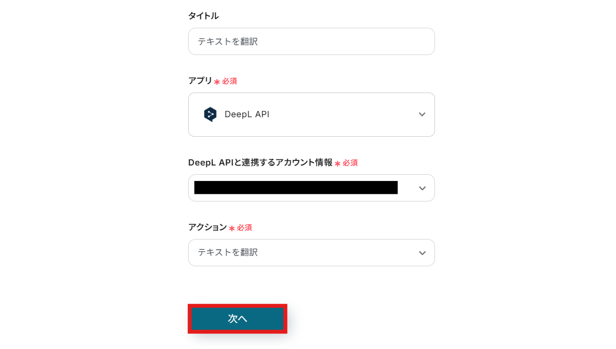 5.DeepLと連携するアカウント情報を設定します。