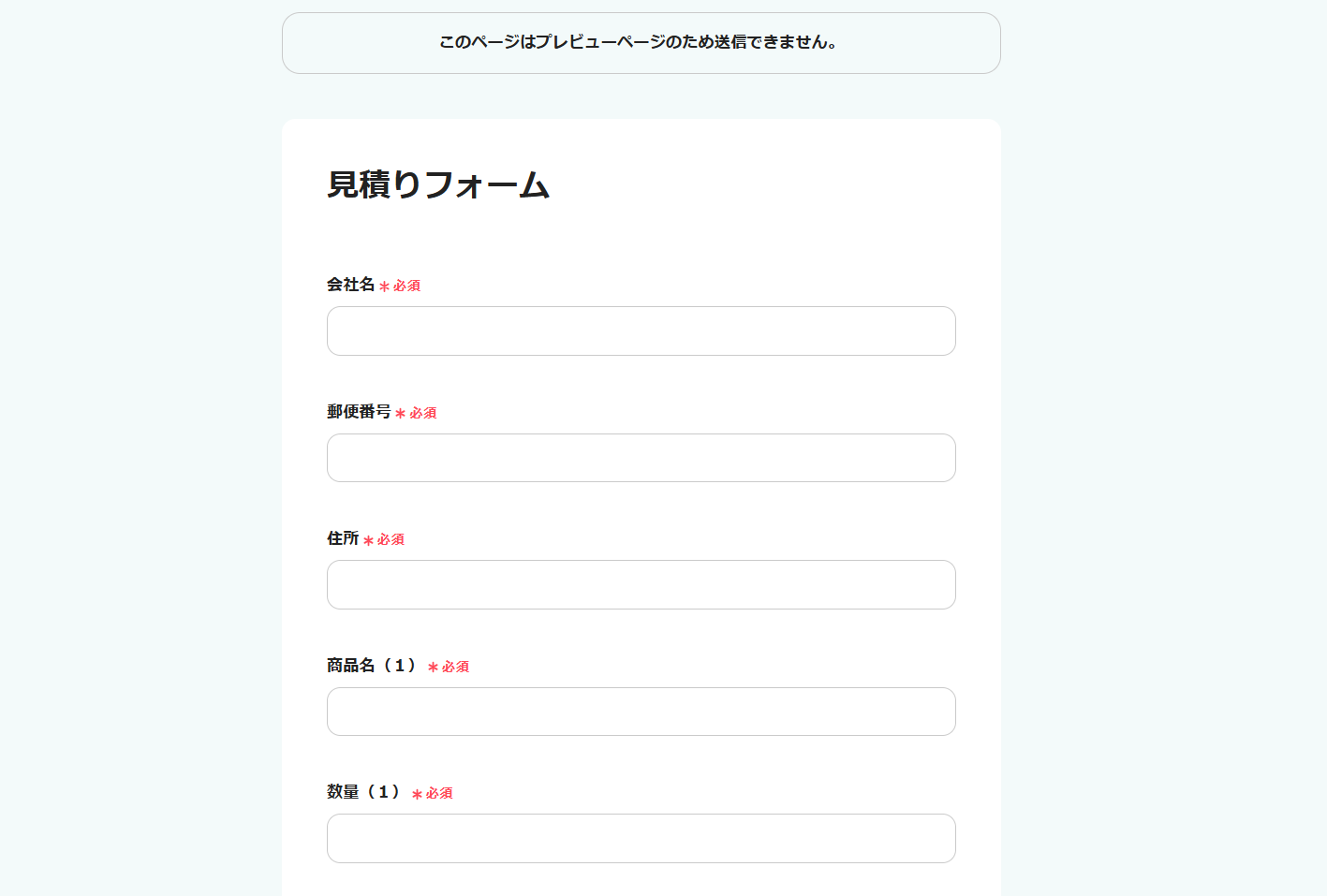 なお、プレビューページをクリックすると以下の画像のようにフォームのプレビューが表示されます。