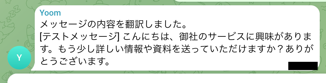 設定したチャット先を確認してみましょう。 チャットに対する翻訳された文章が送信されています!