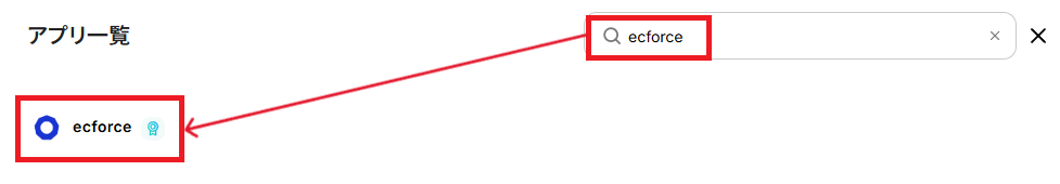 アプリ一覧の検索窓からecforceを検索し、クリックします。