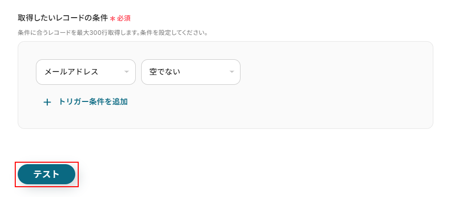 今回は以下のように、メールアドレスが設定されているレコードを取得できるように設定しました。