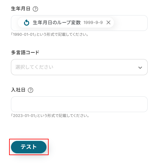 ※テストをクリックすると、実際にユーザー情報が更新されます。
