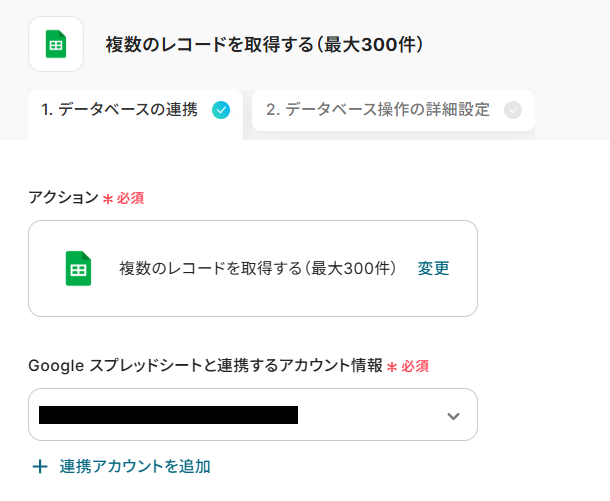 ステップ4:Google スプレッドシートの複数のレコードを取得する設定
