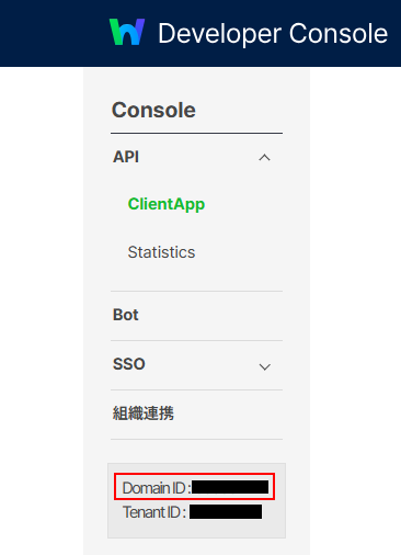 ドメインIDは以下の場所からリンク先から確認できます。
