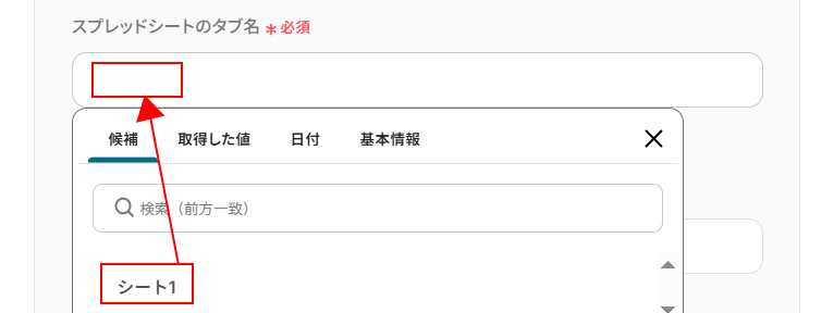 入力欄をクリックし、表示された候補の中から使用しているタブ名を選択してください。