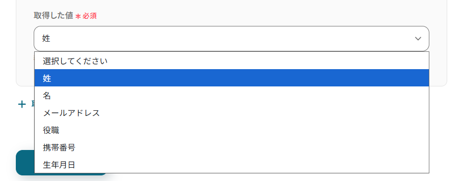 +取得した値を追加をクリックしてください。