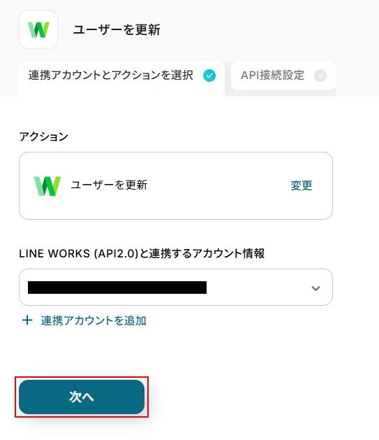 ステップ6:LINE WORKSのユーザーを更新する設定