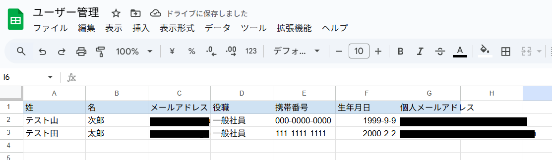 そのため、実際にテストを行うにはGoogle スプレッドシートにユーザー情報を入力しておく必要があります。