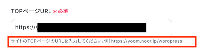 「TOPページURL」を赤枠の注釈を参考にしながら設定します。