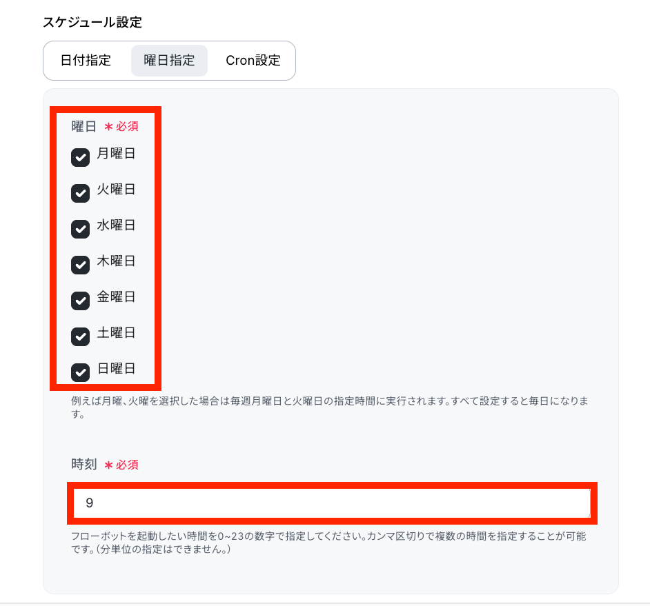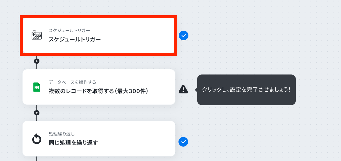 ※詳しい設定方は📅スケジュールトリガーの設定方法 をご確認ください。