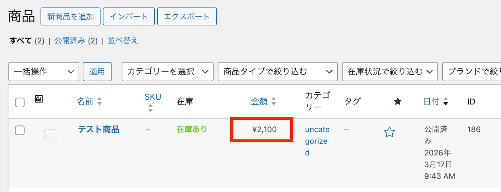 テストに成功したら、実際にデータが更新されているかWooCommerceを確認しましょう。 金額が更新されていたらOKです! Yoomに戻って「完了」をクリックします。