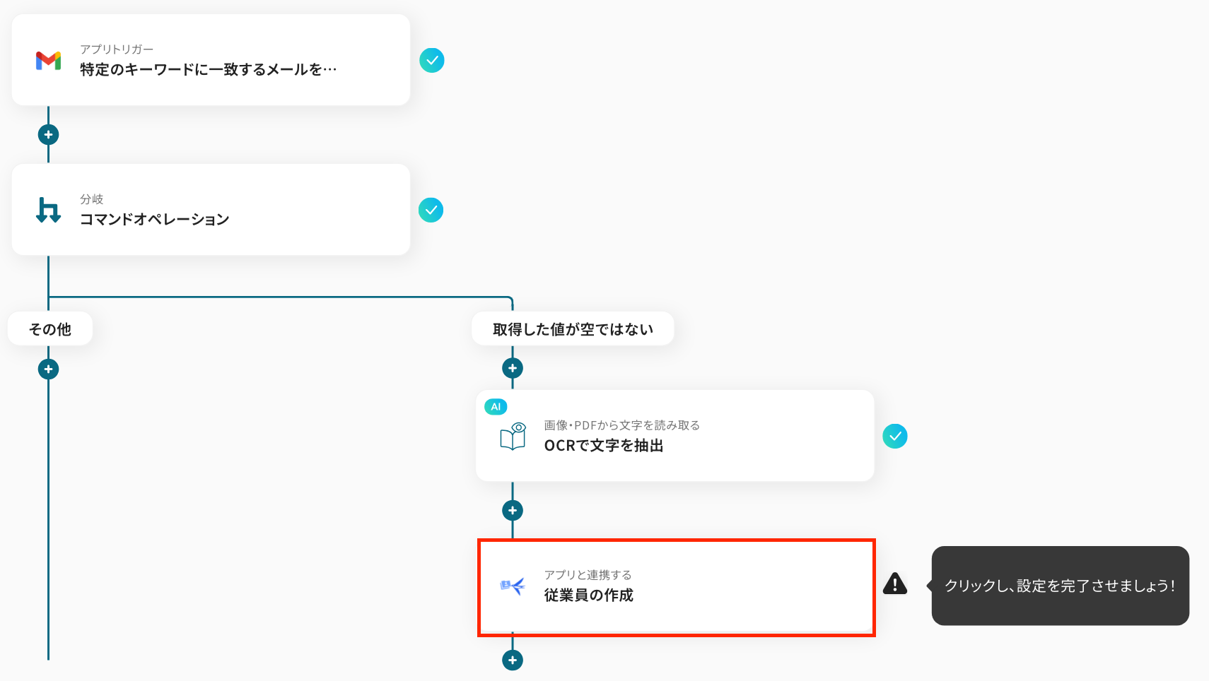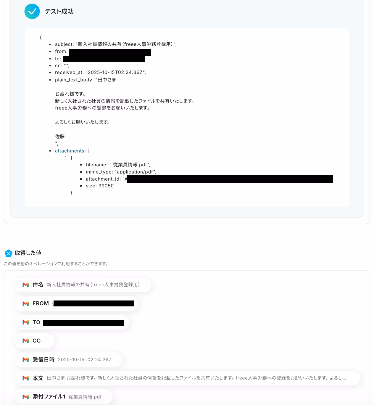 以上が【Gmailで入社案内のメールを受信したら、添付ファイルをOCRしfreee人事労務に従業員を登録する】方法でした!