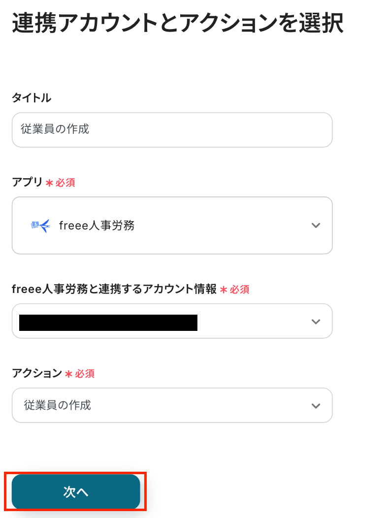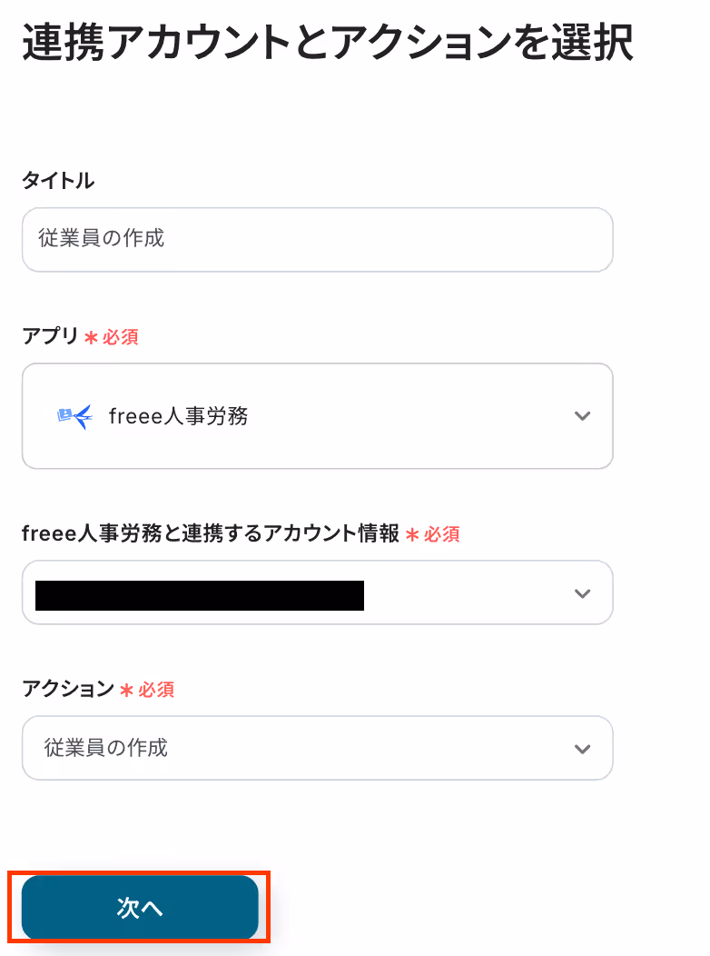 いよいよ最後の設定です。ここでは、freee人事労務に従業員を登録する設定を行います。