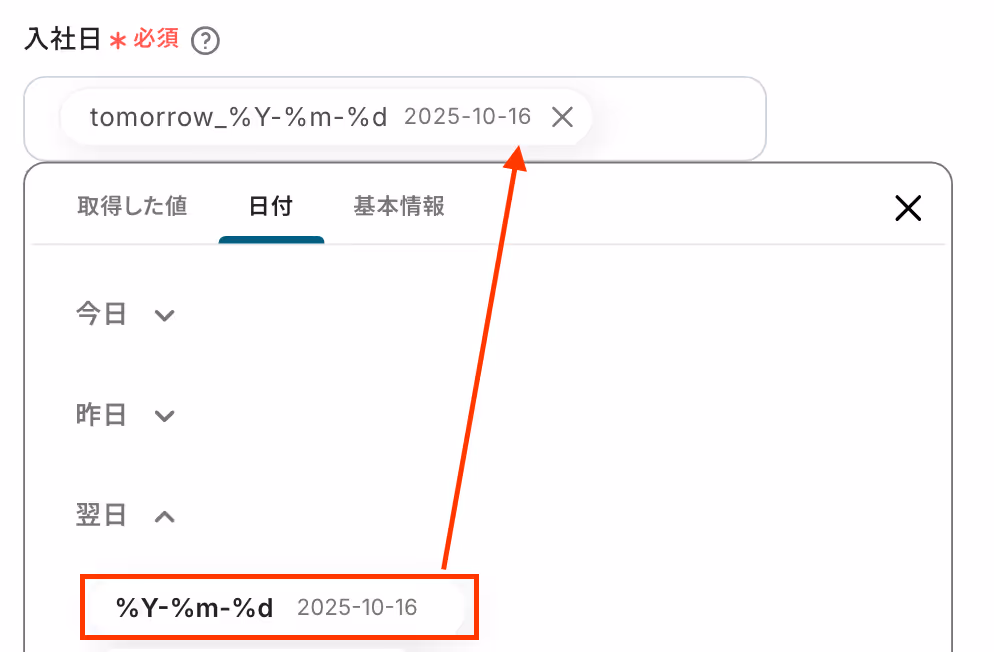 「取得した値」は、先ほどのトリガー設定で取得した「添付ファイル1」を選択しましょう!
