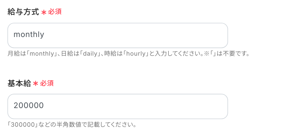 「給与方式」・「基本給」:入力欄に直接入力してください。