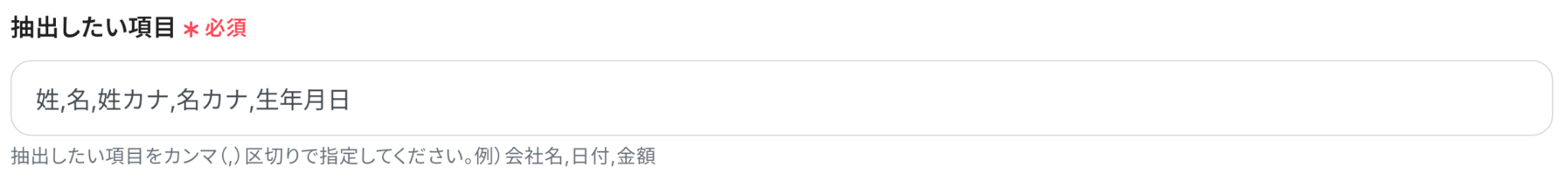 「抽出したい項目」:デフォルトで設定されていますが、運用に合わせて入力してください。入力する際は、入力欄下の注釈に沿って入力しましょう。