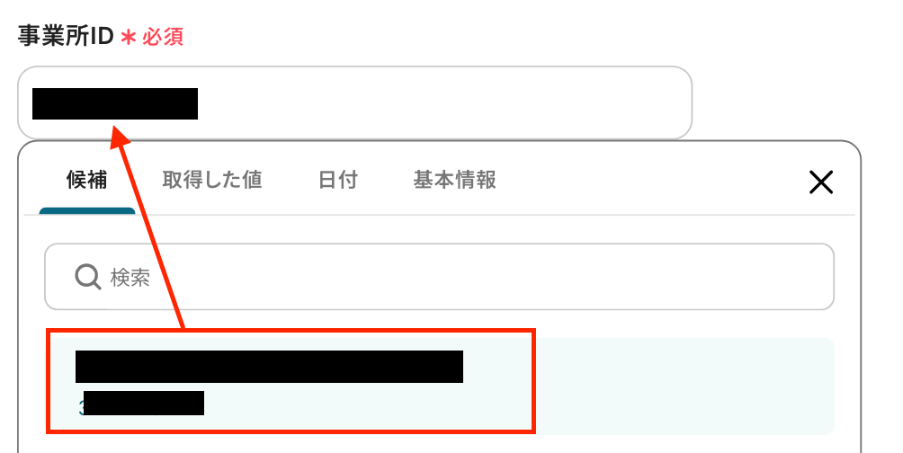 「事業所ID」:入力欄をクリックして表示される候補から選択しましょう。
