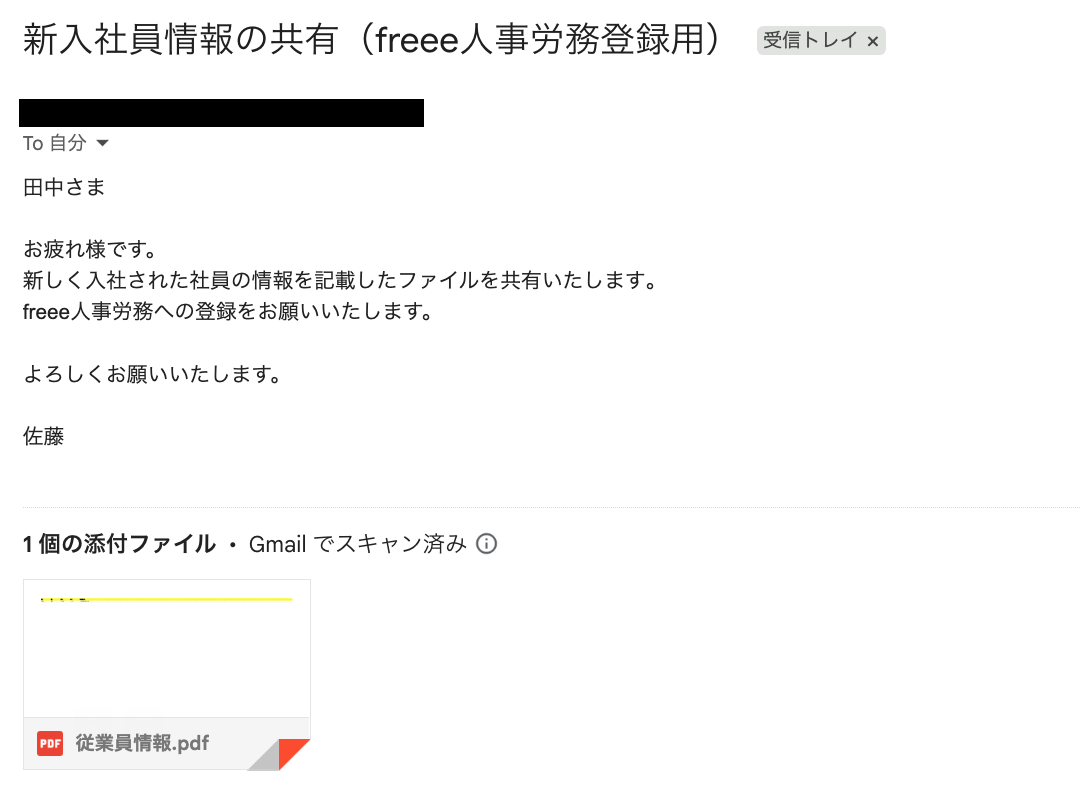 Gmailで入社案内のメールを受信したら、添付ファイルをOCRしfreee人事労務に従業員を登録する