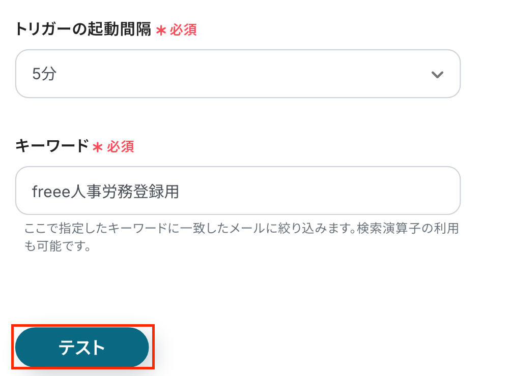 キーワード:先ほどテスト送信したメールの文章に含まれているキーワードを入力しましょう。
