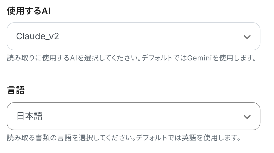 使用するAIと言語を任意で選択します。プルダウンから選択してください。