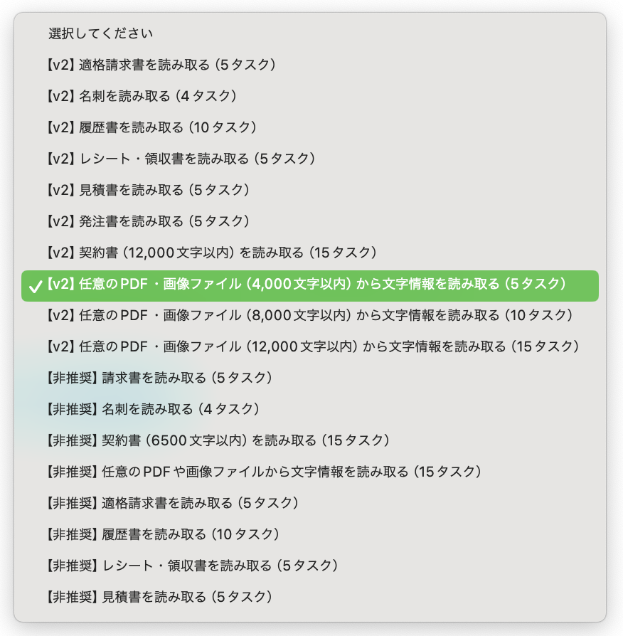 ・OCRまたは音声を文字起こしするAIオペレーションはチームプラン・サクセスプランでのみご利用いただける機能となっております。フリープラン・ミニプランの場合は設定しているフローボットのオペレーションはエラーとなりますので、ご注意ください。