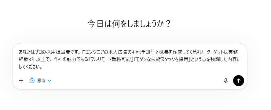 検証方法 本検証では、ChatGPT (GPT-5.4 Thinking)を使用して、求人広告のキャッチコピーと概要を作成します。