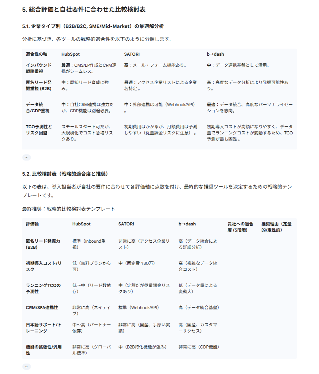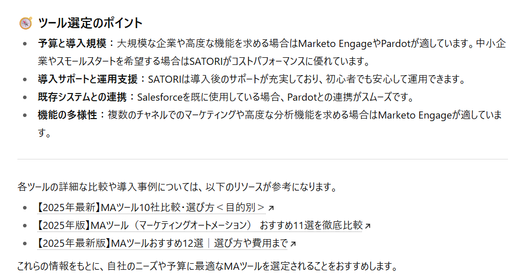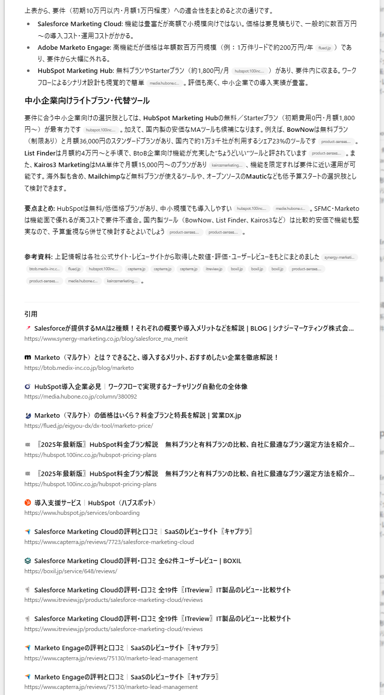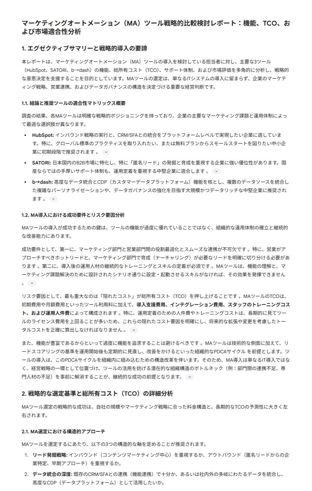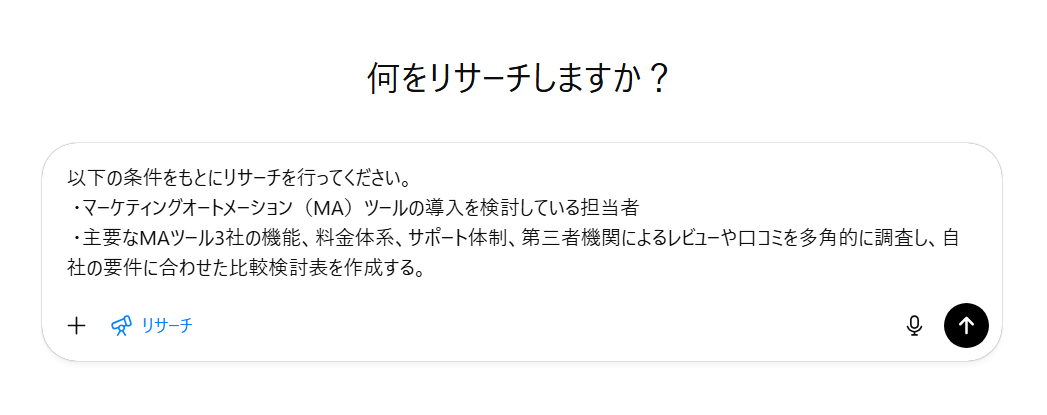 複数の選択肢から最適なものを選びたい担当者にとっては、Deep Research機能は特に役立つのではないでしょうか。