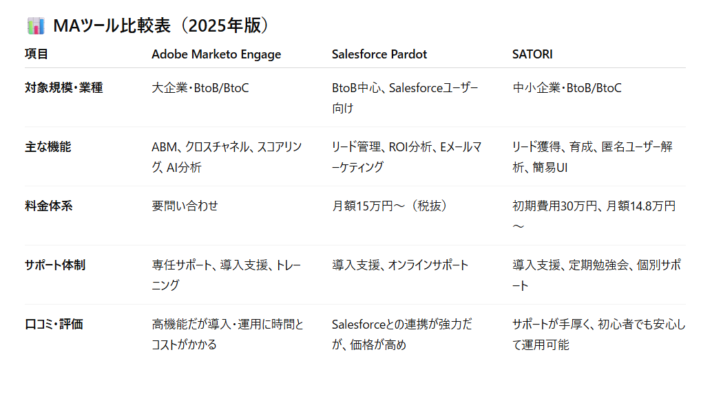 検証するアウトプット:主要なMAツール3社の機能や料金体系、サポート体制、第三者機関によるレビューや口コミを多角的に調査し、自社の要件に合わせた比較検討表