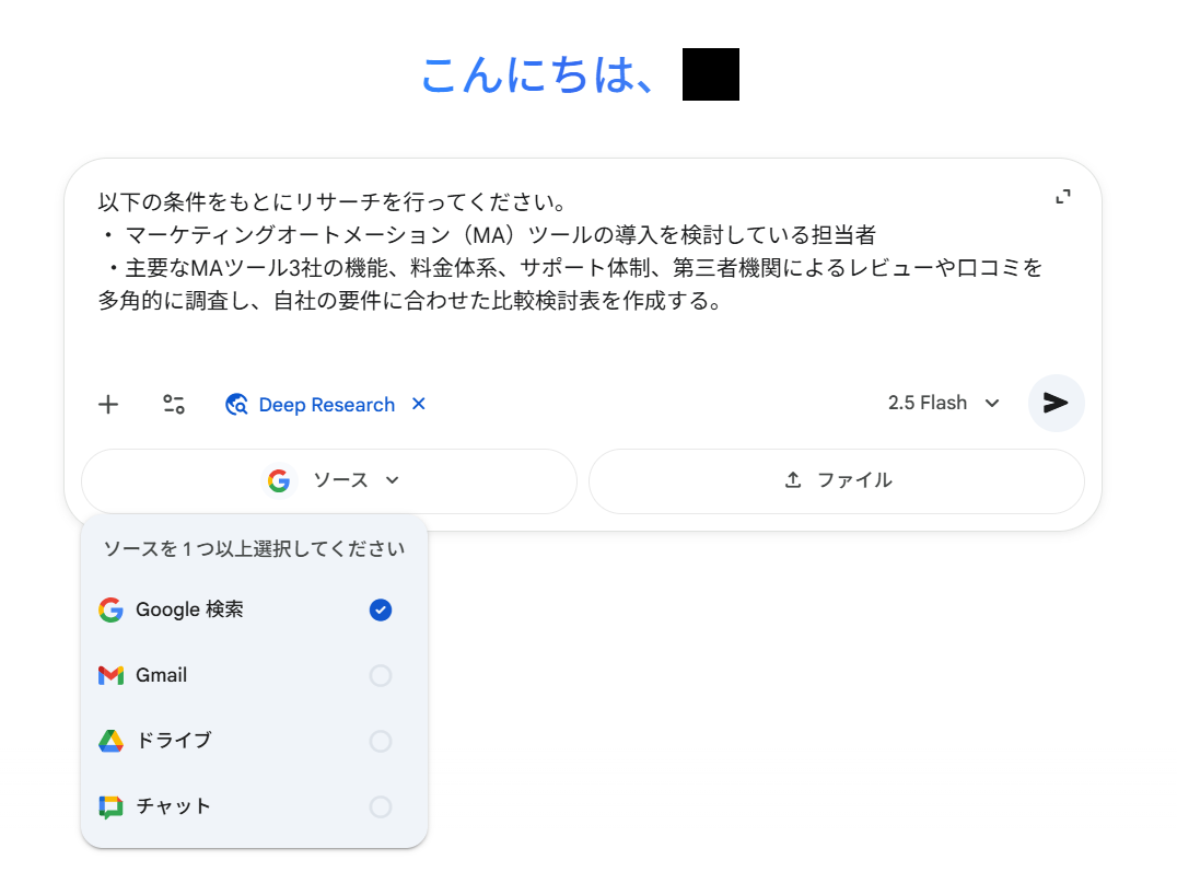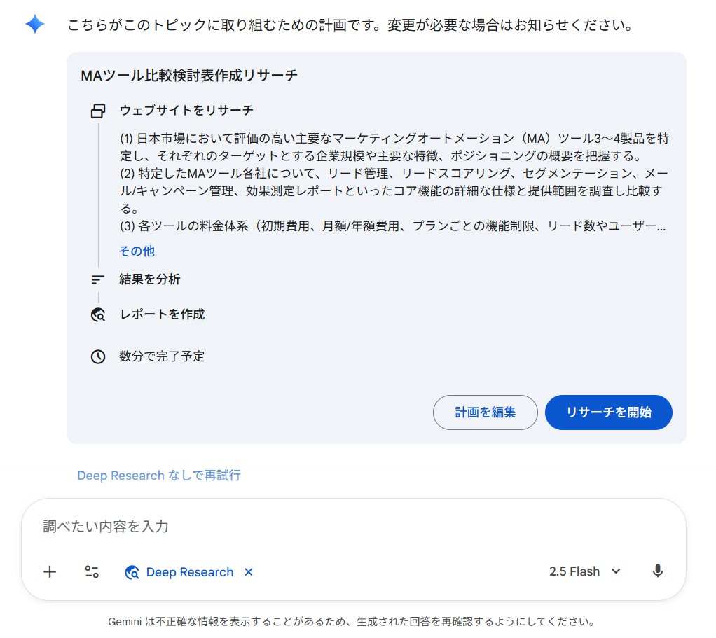 2.5 ProモデルでのDeep Researchは、有料プランで利用可能です。