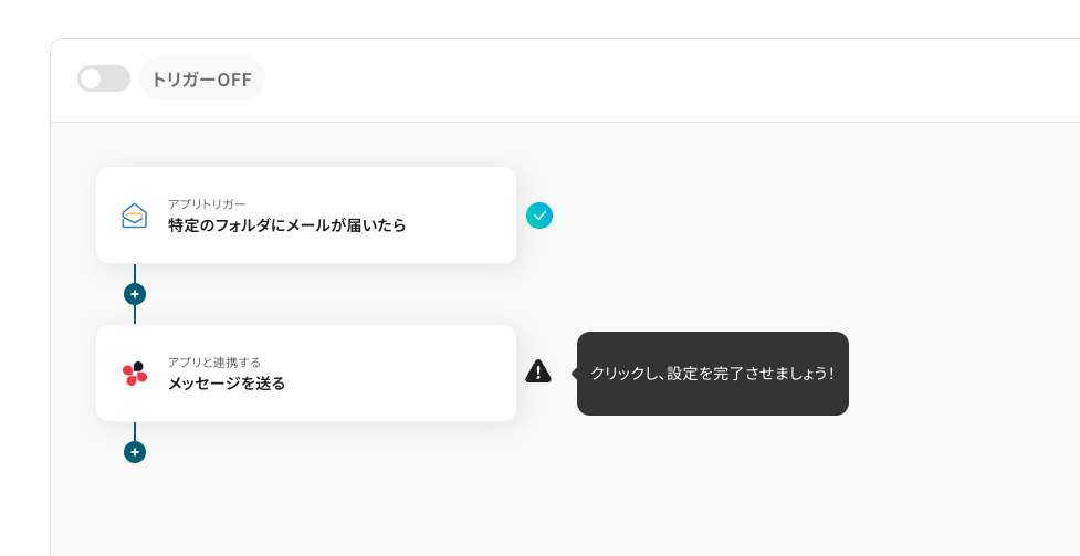 Gmailで特定条件のメールを受信したら、Chatworkに通知するフローです。