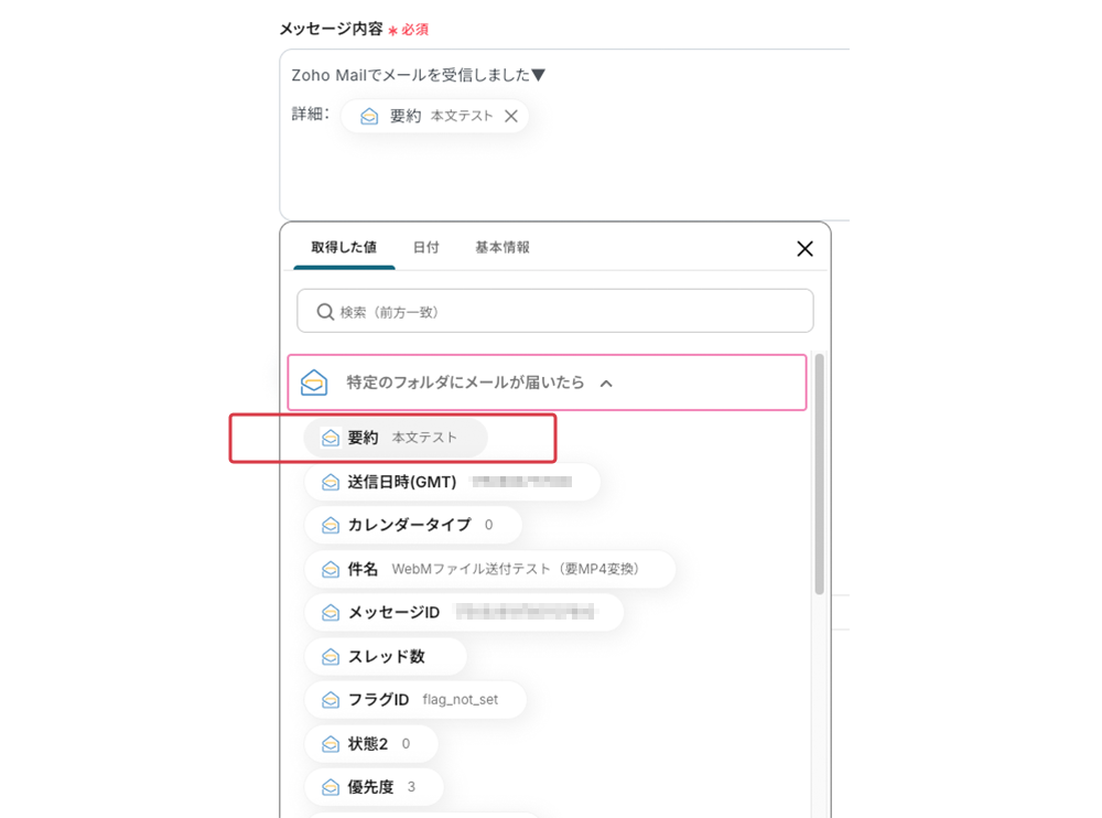 Zoho Mailの特定のフォルダでメールを受信したら、Chatworkに通知する