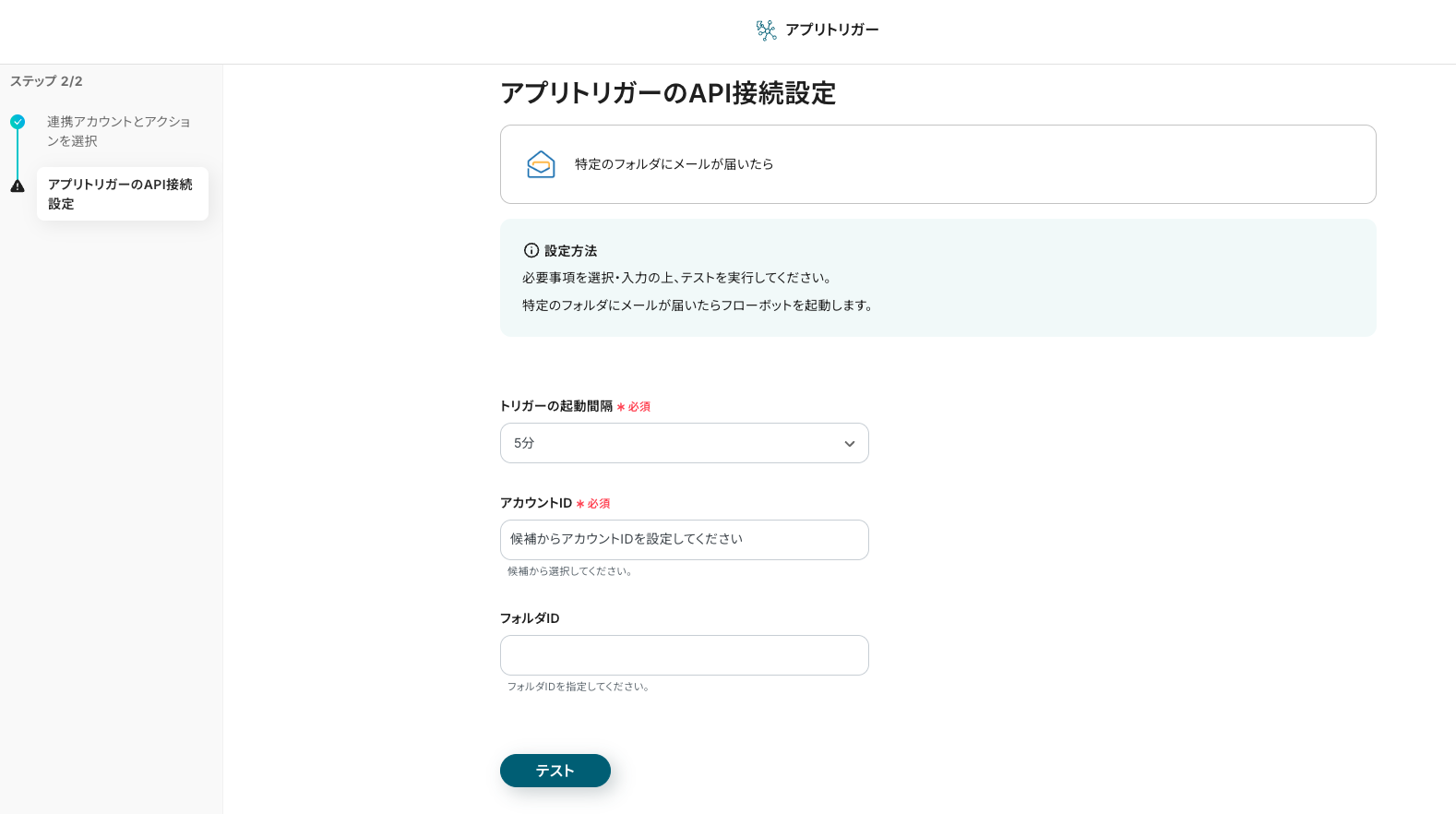 ・トリガーは5分、10分、15分、30分、60分の間隔で起動間隔を選択できます。