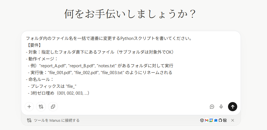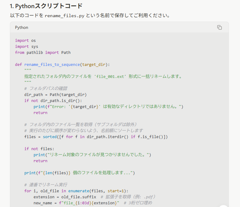 依頼したのは「フォルダ内のファイル名を一括で連番に変更するPythonスクリプト」です。