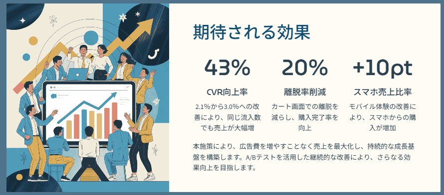 「期待される効果」といった前向きなセクションでは、視認性が高いレイアウトが適用されています。