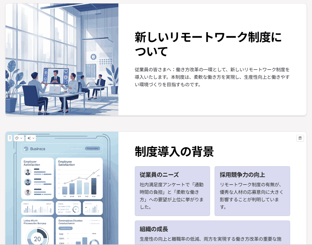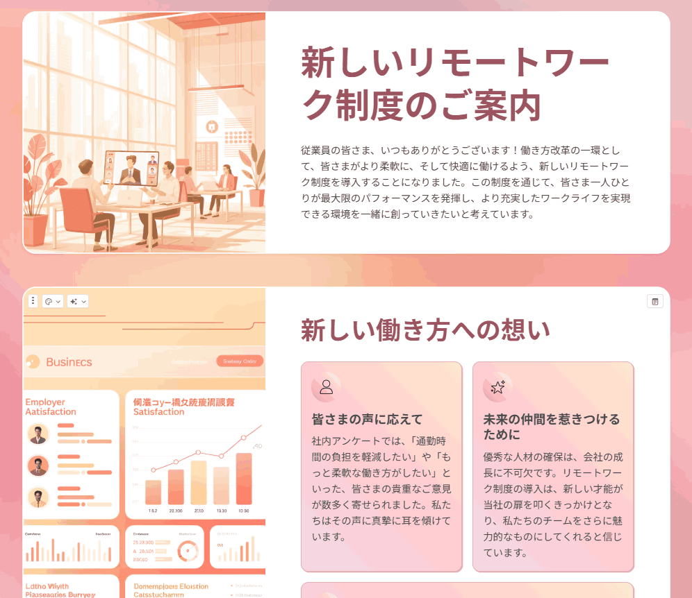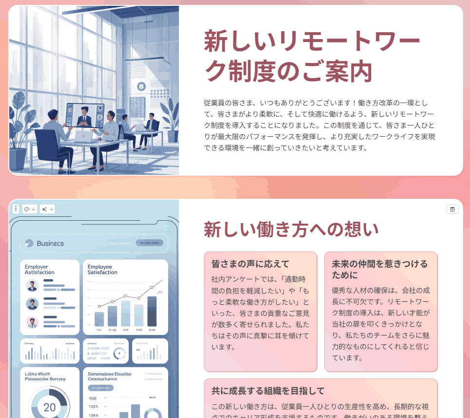 驚くべきは、テキストの内容には一切手を加えず、デザインのトーンだけを完璧に同期させた点です。情報の正確性を保ちつつ、視覚的なまとまりを瞬時に作り上げました。