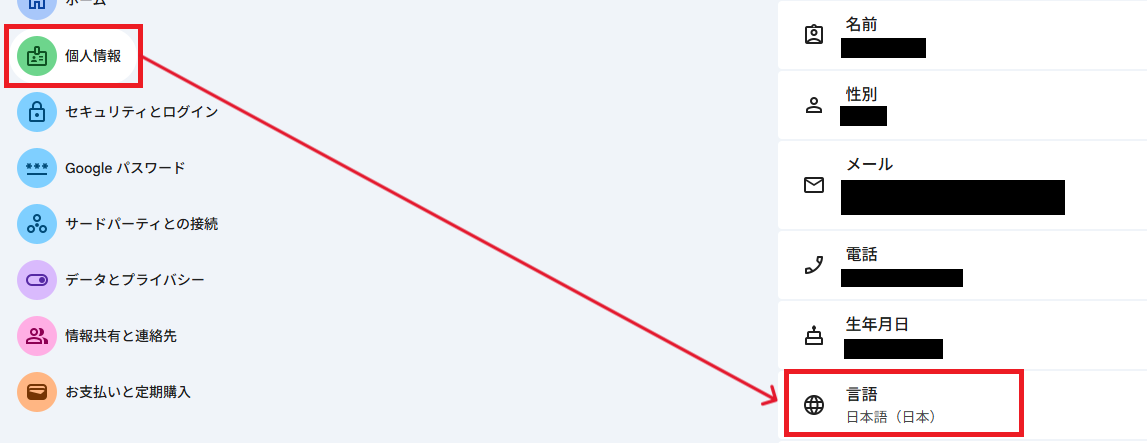 2. Googleアカウントの言語設定を確認する Googleアカウント自体の「個人情報」設定で、優先言語が「日本語」になっているか確認しましょう。 これにより、一部のエラーメッセージやガイドが日本語で表示される 場合があります。