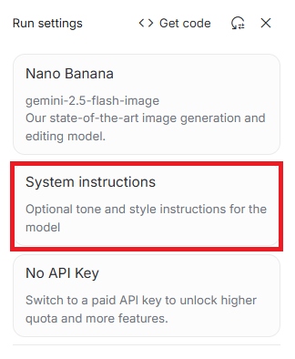 2. System Instructions(システム指示)の活用法 画面上部にある「System Instructions」は、AIに対する「事前命令書」のようなものです。 ここに日本語で役割や制約を入力する ことで、回答の品質を安定させることができます。
