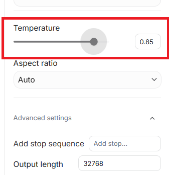 詳細な調整:「System Instructions(システム指示)」や「Temperature(創造性の度合い)」などのパラメータを調整し、回答の精度やスタイルをコントロールできます。
