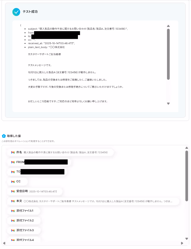 今回は例として、「テスト」を含むメールを受信したら、フローボットが起動するように設定しました!