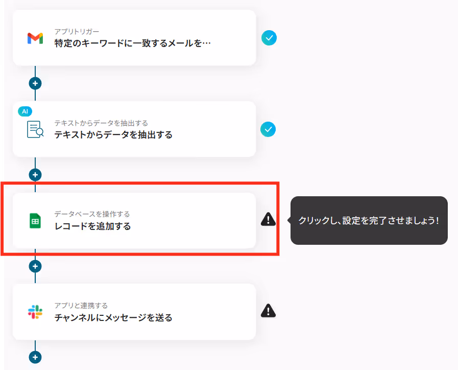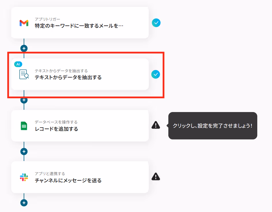それではここから代表的な例として、Gmailで特定のキーワードを含むメールを受信した際に、その内容をGoogle スプレッドシートに自動で追加し、さらにSlackへ通知するフローを解説していきます!