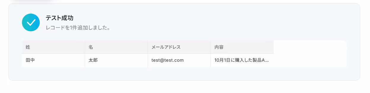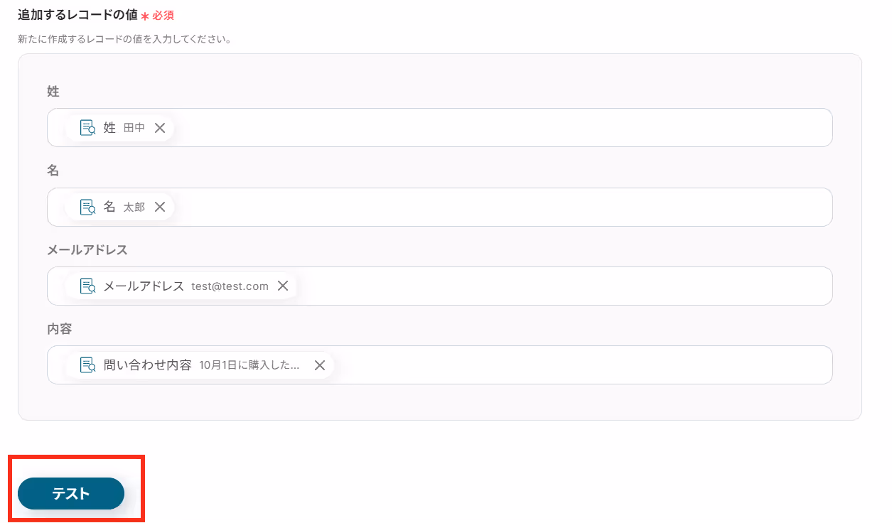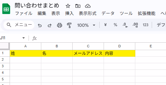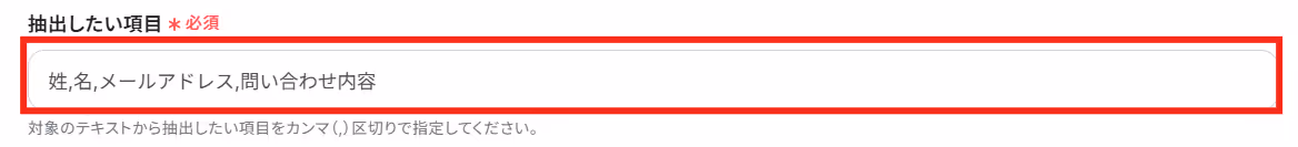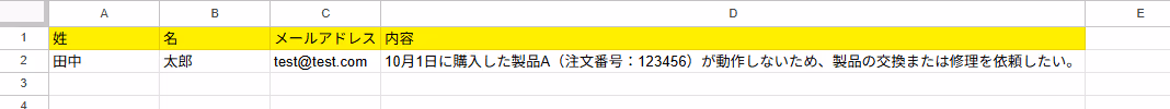 例として「姓,名,メールアドレス,問い合わせ内容」と設定しました!