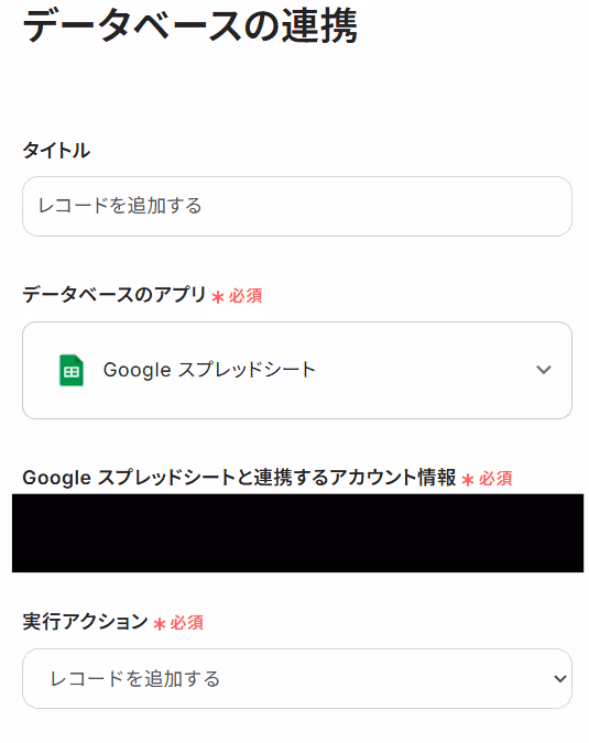 タイトルと連携するアカウント情報を確認しましょう。実行アクションはテンプレート通りのままでOKです!