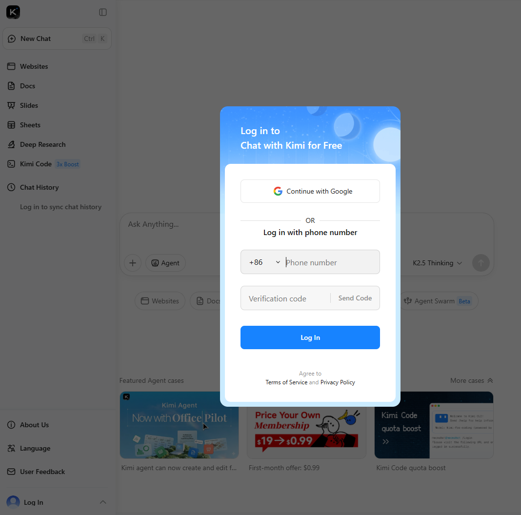 Kimi AIの利用を開始するには、まず公式サイトにアクセスします。