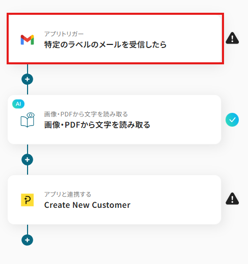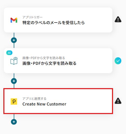 それではここから代表的な例として、Gmailで受信したメールの添付ファイルをOCR機能で読み取り、その情報をもとにPaddleに顧客情報(Customer)を自動で作成するフローを解説していきます!